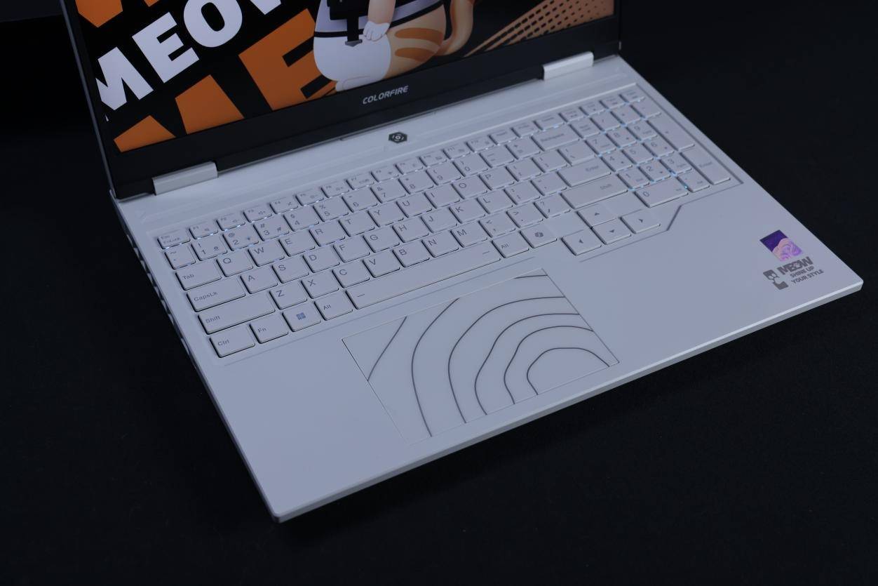打开屏幕后,C面触摸板采用了与A面相同的ID设计,右下角也有MEOW的系列LOGO与Slogan。