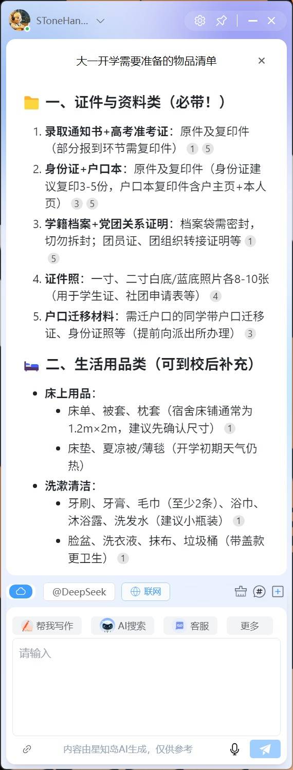 除了这两大功能点更新外,常规功能还都都是存在的,比如支持联网搜索的AI对话功能: