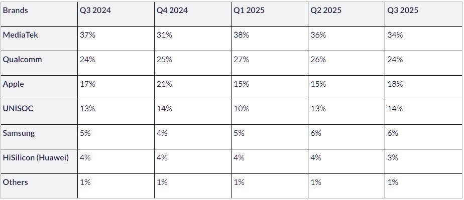 大幅领先友商!联发科2025 Q3再夺全球智能手机AP-SoC市场份额第一!