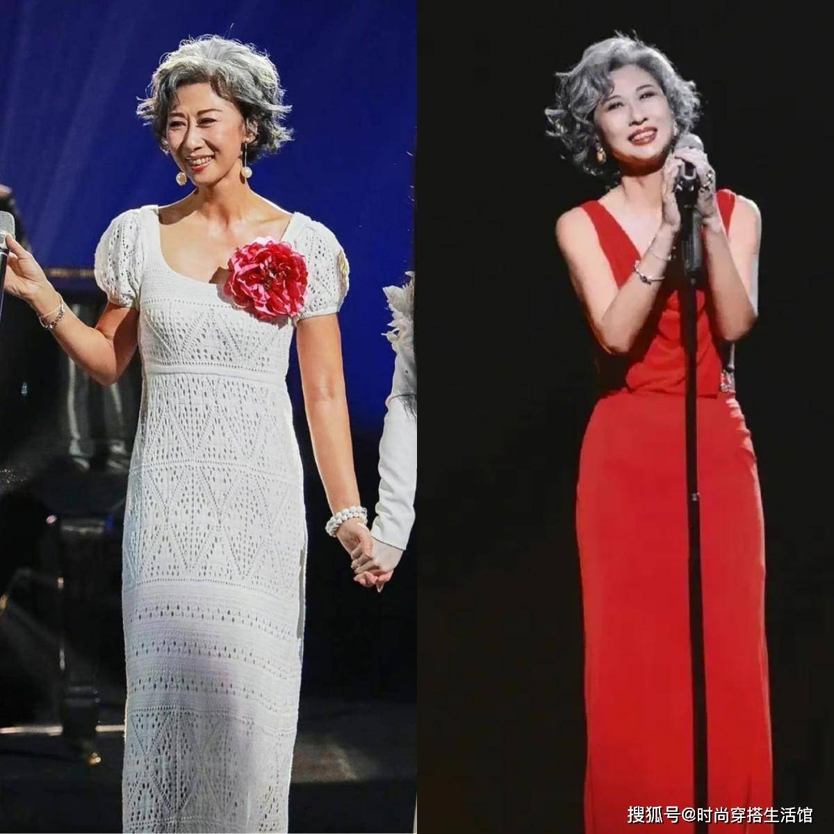满头白发的她站在舞台上,会有人觉得她色衰年老吗?并不会,有的只是惊叹,惊叹于她的气质、惊叹于她的从容。一头白发的她依旧美得很耀眼啊,所以美和年龄其实是没有多大关系的。