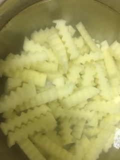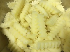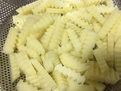 2.用波浪刀具将厚土豆片切割成条