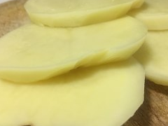1.大土豆削皮切成0.5cm的厚片