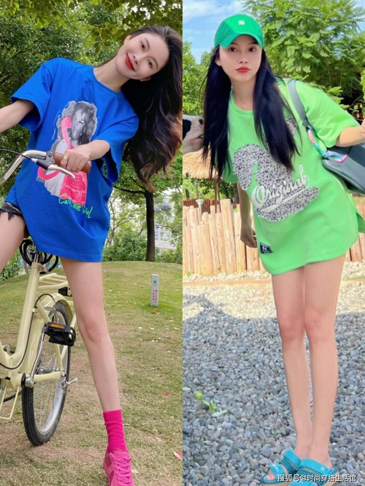 宽宽松松的长款T恤融合下衣失踪的穿法,能够淋漓尽致的展现双腿曲线。这样的穿搭这几年比较流行,很适合腿部纤细的女生选择。而且这样的一套搭配清凉感比较足,我们可以试一试亮色系T恤,衬托的皮肤更加白皙,不会让自己看起来过于单调。