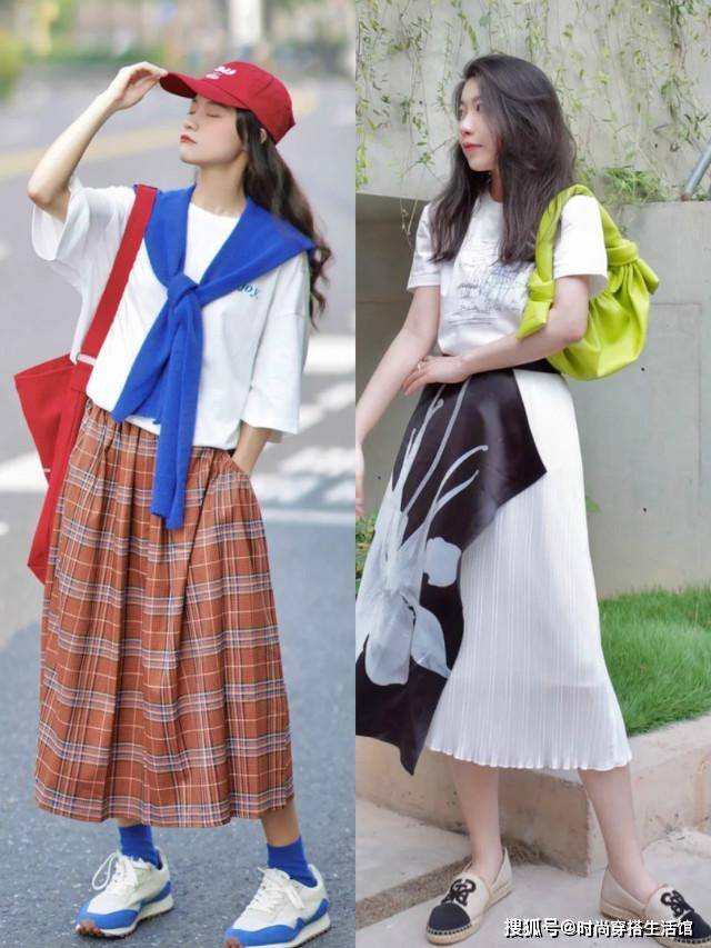 tips2.T恤+百褶裙