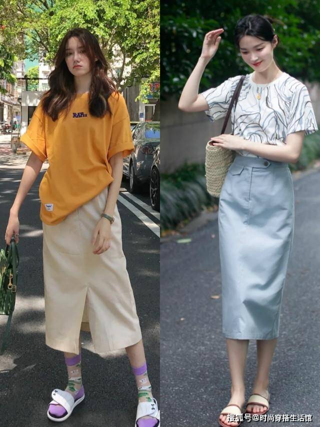T恤下不兴牛仔裤了,今夏流行的“新配”示范,优雅显瘦还很时髦