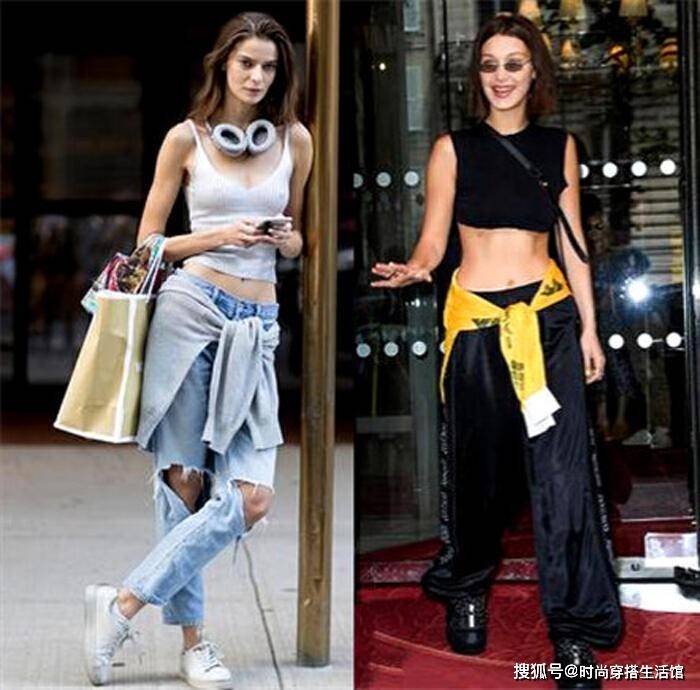 背心+长裤,用外套绑腰间,然后两个袖子在腰前打个结。这种穿法,可以用于逛街时。除了为造型加分,增添层次感与别致感之外。