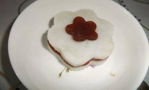 Step3:这样做出来的芋头糕口感会松软粘稠!购买的普通国蛋皮肤。压扁后,找一些喜欢的饼干模具,压在锅蛋皮上,把锅蛋皮切开。