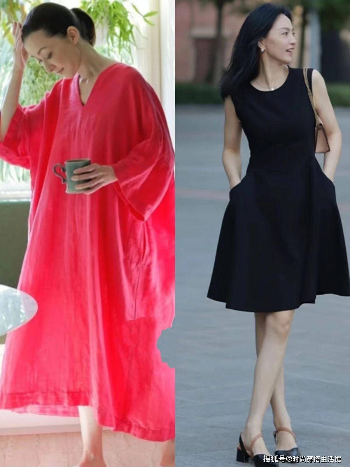 其实对于中年女性而言,肤色或多或少都会变得暗沉许多,已经没有年轻时那么白皙透亮,那么在裙子颜色的选择上,就尽量以简单的素色款式为主。