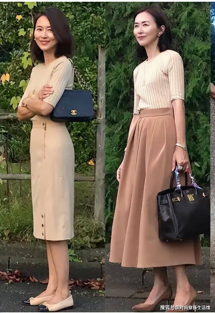 于中年女性而言,着装最为重要的便是得体,这也是气质沉淀的一种修炼。长度过膝的裙装,会给人一种成熟稳重感。上了年纪的女人,无论是半身裙还是连衣裙,裙装长度选择时要懂得“短不上膝,长不过踝”,会比较得体。