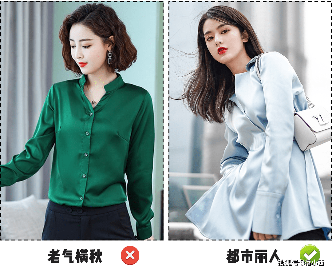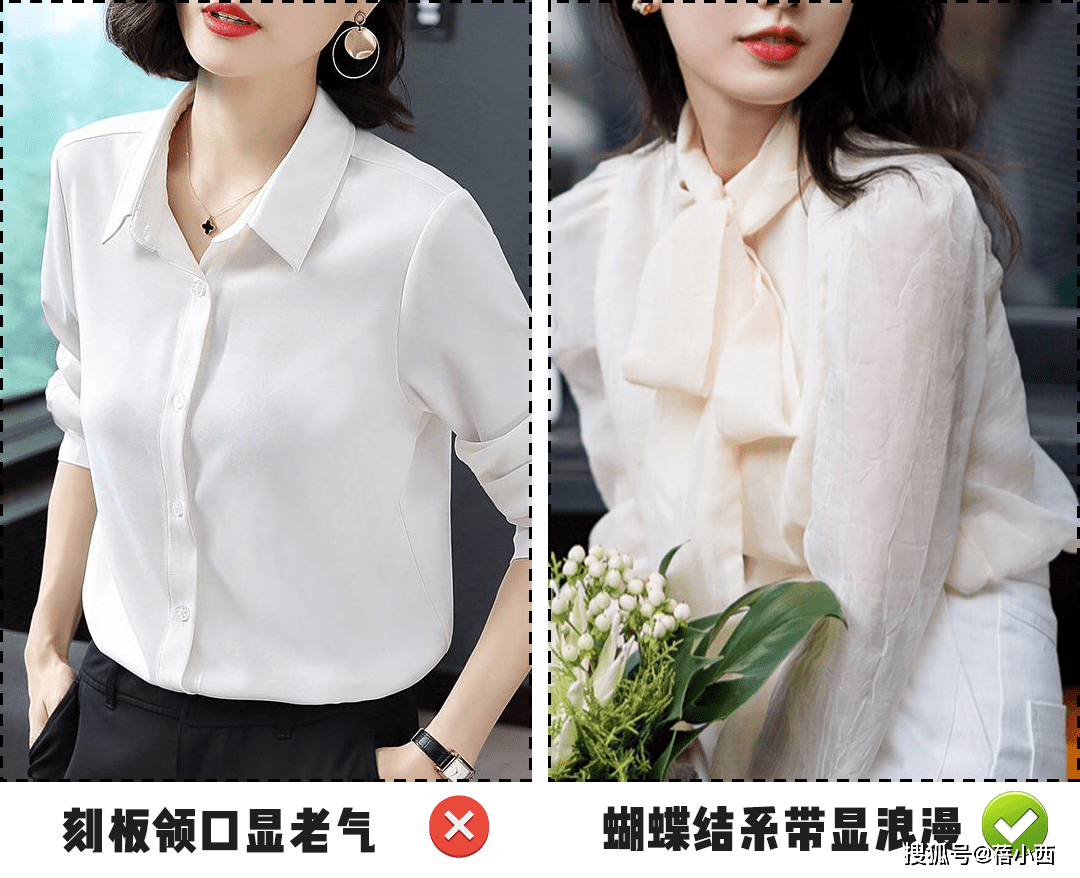 在挑选衬衫的时候,细节剪裁还是很重要的,不管是日常搭配还是通勤的时候穿,尽量别固守陈规,衬衫领口设计也是其中一个尤为重要的细节,尽量别穿这种领口线条太刻板的衬衫,这不仅显得老气,还很难修饰颈部,不容易体现时尚感。