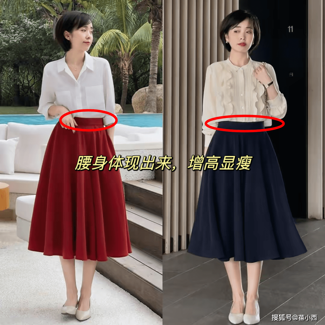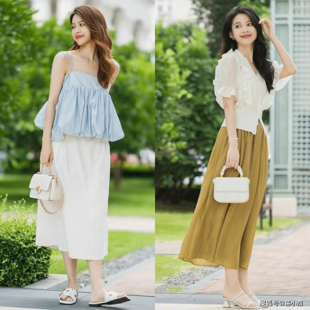 半身裙款式确实多,不管你挑选长裙和短裙,只要你下半身可以保证留白就可以啦,用合适留白可以体现轻盈感,凸显身材优势。比如中长款的半身裙让脚踝留白,结合高跟鞋也可以拉伸下半身,体现大长腿。