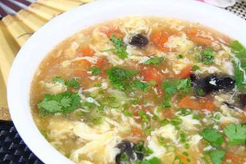 蛋花打开的技巧:往汤里淋鸡蛋液的时候,顺时针沿着锅沿往里大概三指的位置往锅里淋,蛋花会自动的漂上来,不要胡乱搅,也不要倒的太集中太厚,要不然就漂不上来了。汤入碗以后,淋醋,淋香油,撒葱花,尽量保留汤汁和蔬菜的原味,不要放各种调料,禁鸡精、味精等。