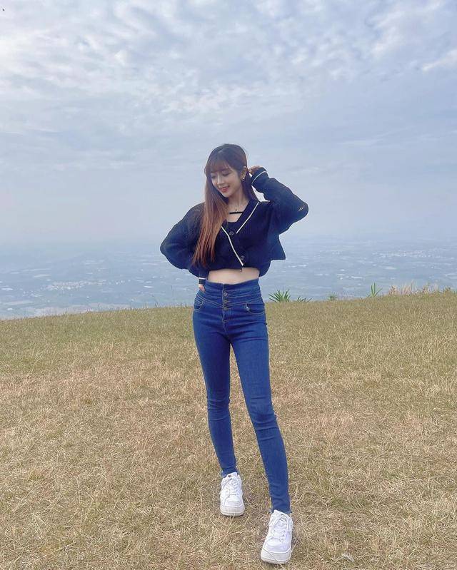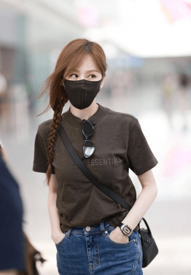搭配上深色T恤和牛仔裤,王心凌展现了她的青春活力和随性的风格。深色T恤凸显了她纤细的身材线条,同时又透露出一丝随性与率性。而牛仔裤则给整体造型增添了一份休闲感,使得她的形象更加娇美动人。