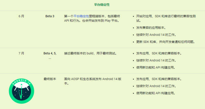 Beta 4是Android 14的第二个平台稳定性里程碑版本,这意味着开发者API和所有面向应用的行为都已最终确定,供大家评估和整合进自己的应用。您可以使用正式的API级别在Google Play上发布以Android 14为目标平台的应用。