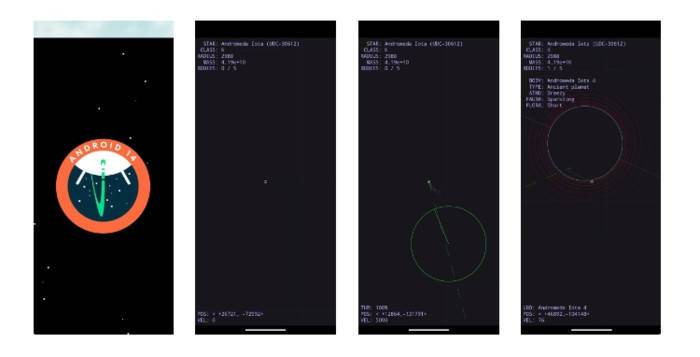 彩蛋启动页是Android 14的NASA风格的标志,长按图标进入游戏。在中间有一个太空船,手指滑动屏幕可控制方向和速度。