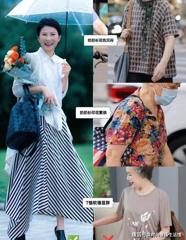 四五十岁女人更不必将时尚寄希望于本就老气的奶奶衫。低亮度的颜色让奶奶衫看起来沉闷不堪,软塌易贴身的材质上身显胖又闷汗,穿上就老年感十足!