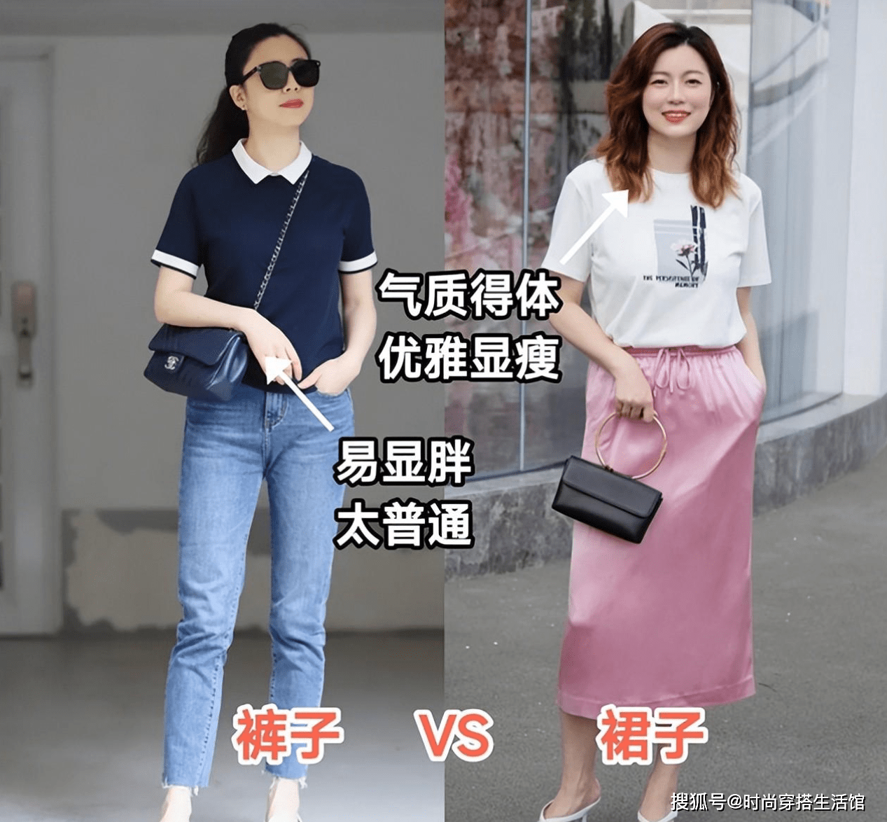 穿裙子会仙气优雅一些,但是行动有些不方便,穿裤子会干练利索一些,但是大多数服装搭配有些闷热不透气,这是否也是你在搭配时所纠结的问题呢?如果你还在为此纠结的话,不妨看看下面两组裤装和裙装搭配对比吧。