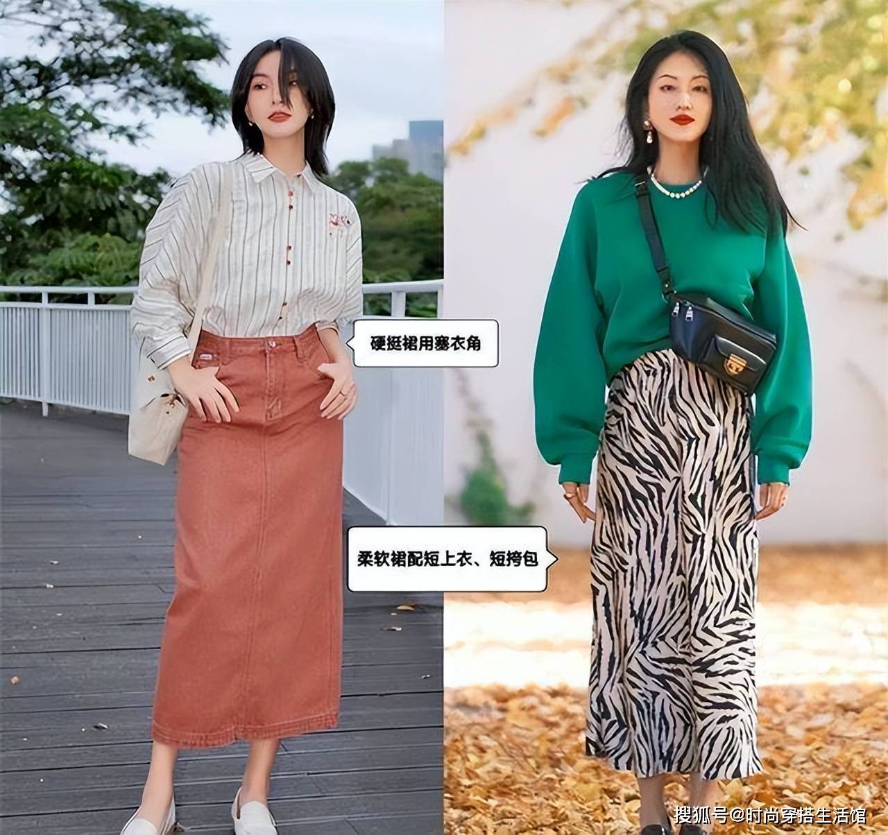 为何今年时尚达人都放着裙摆宽松、能遮肉的宽裙子不穿,而去穿看似会暴露缺点的紧身裙?看对比才知紧身裙反而比宽裙子更利落!