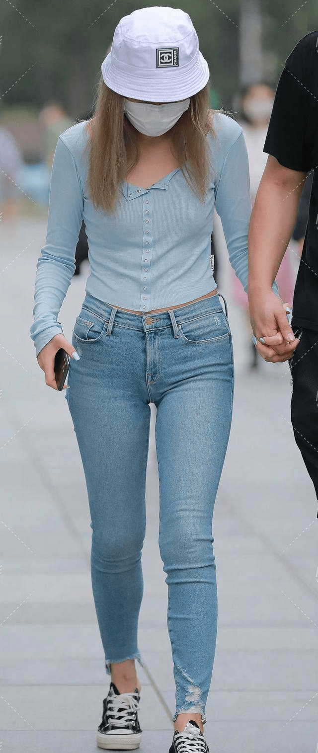 小脚牛仔裤搭配渔夫帽,减龄舒适搭配,凸显女孩风采