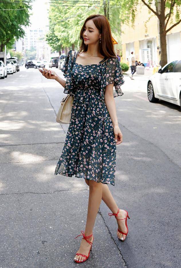 碎花裙具有与大自然融合在一起的既视感,纺纱布料缝制,穿起来悠然洒脱,带有几分仙气,特别极致高腰设计,这种设计反而帮助了胸大的女生,简直是无心插柳柳成荫的感觉。裙子的U型领设计可以展现锁骨,让女生的脖颈美肆意散发,确实够吸引人。