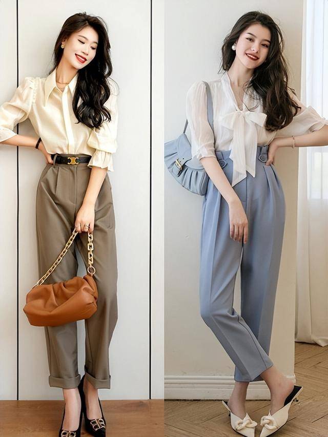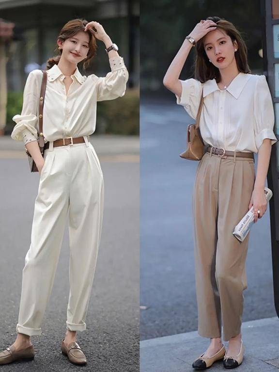 夏季穿搭当中有几种非常非常标准的常规穿搭示范,如果你不太擅长职场上的穿衣搭配,又不想要浪费时间自己去研究,那就可以直接照抄照搬这种常规的搭配方式,第一种就是衬衫搭配西装裤的方式,衬衫可以选择正肩白衬衫,也可以选择带有领结的白衬衫,下半身搭配西装裤或者是铅笔裤的时候可以适当的尝试亮色系,但是视觉攻击性不能太强。