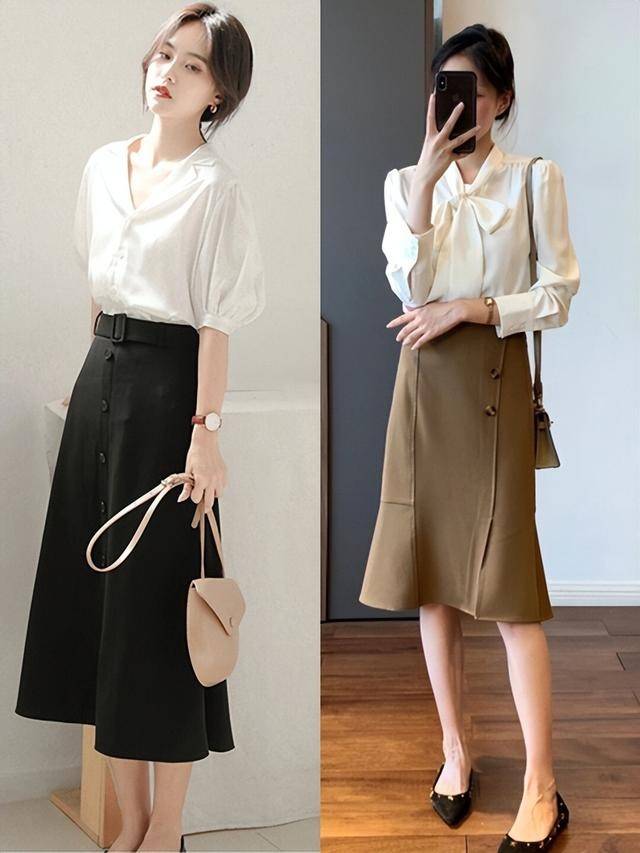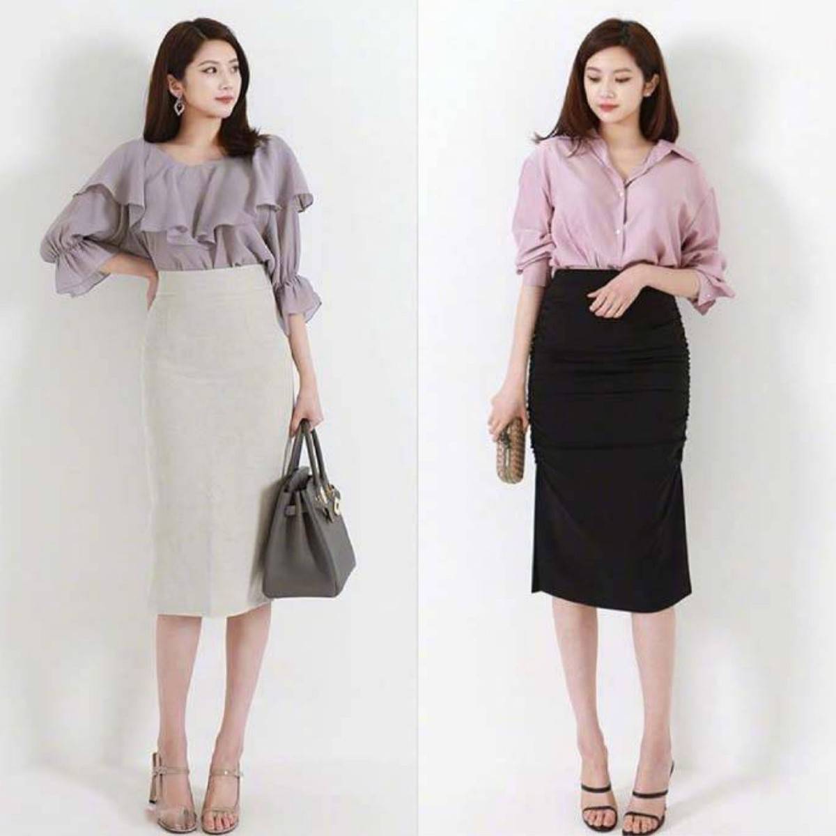 最后一种就是衬衫搭配一步裙,这种搭配方式女人味十足,在展现女性魅力的方面是毋庸置疑的,但是,同样的对于女性的身材要求也相对会更高一些,而且包臀裙的质感选择是非常重要的,如果质感不足的话,穿在身上就很容易影响舒适度,而且在两边胯部还很容易穿出褶皱感。