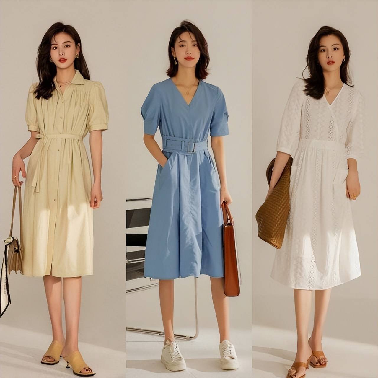 第二种是自带收腰设计的中长款连衣裙,中长款的连衣裙在裙摆的设计上大多都到小腿的位置上,这种长度的连衣裙对于场合的限制性非常小,不管是日常化的场景还是职场穿搭当中,这种裙装的利用率都是非常高的。