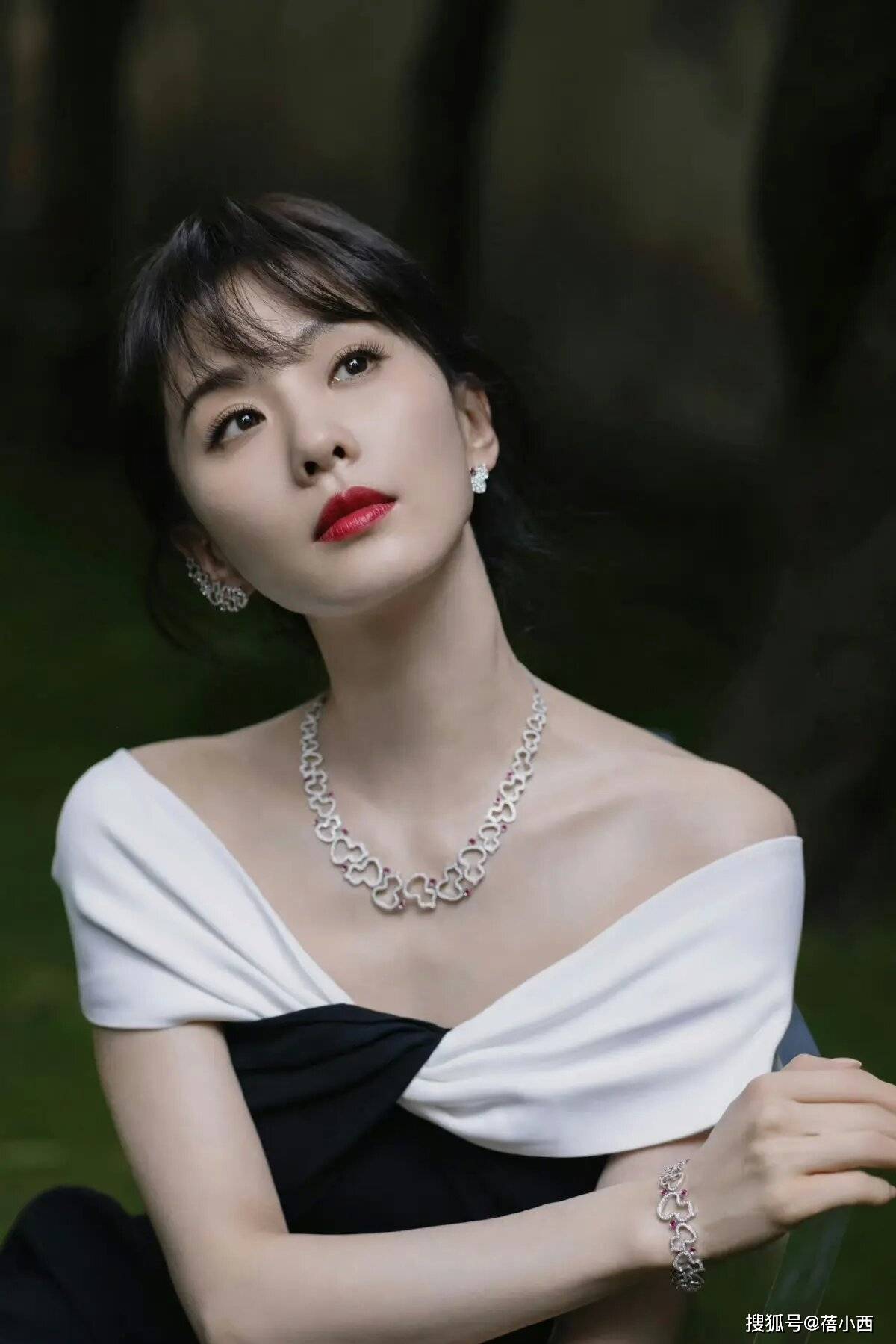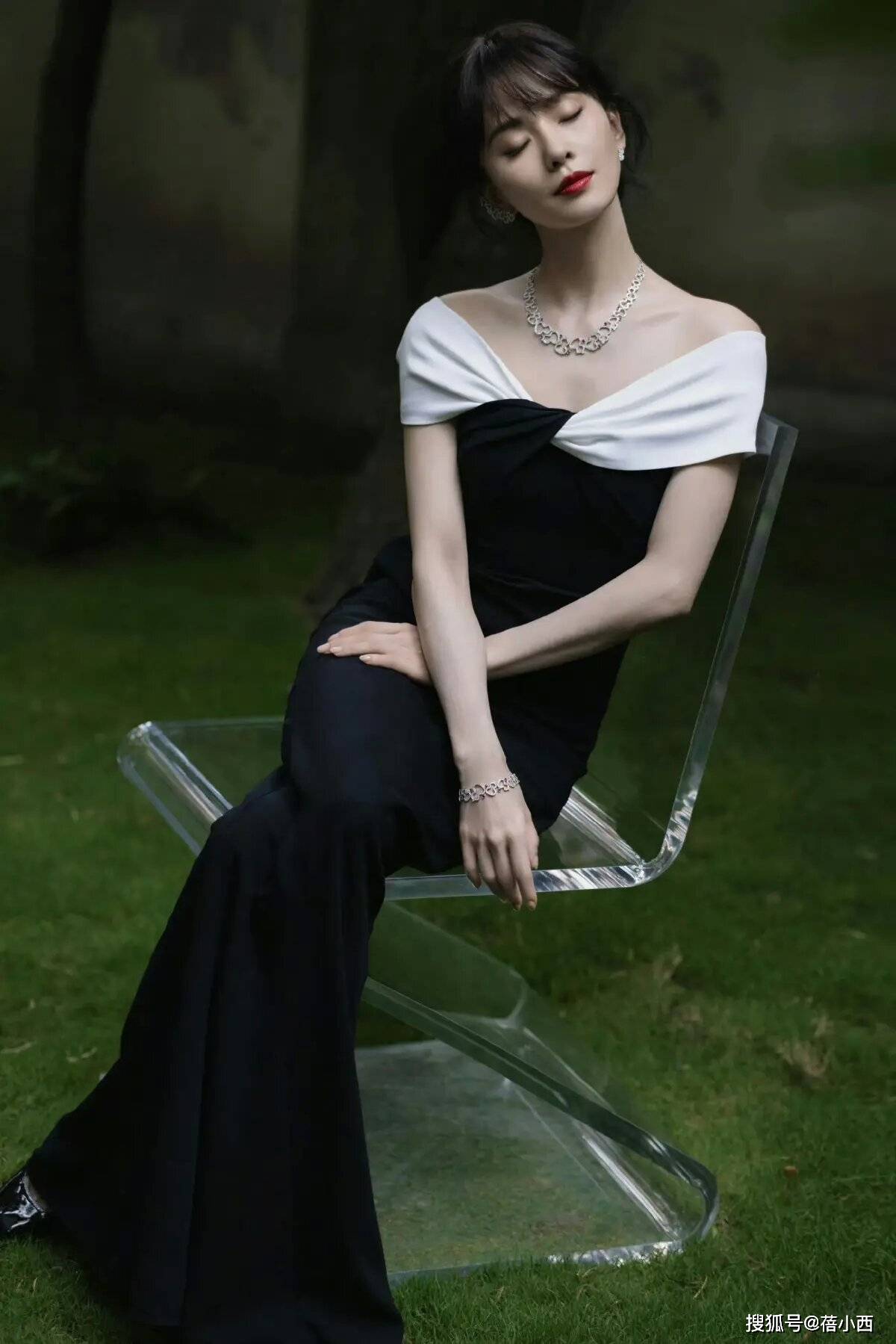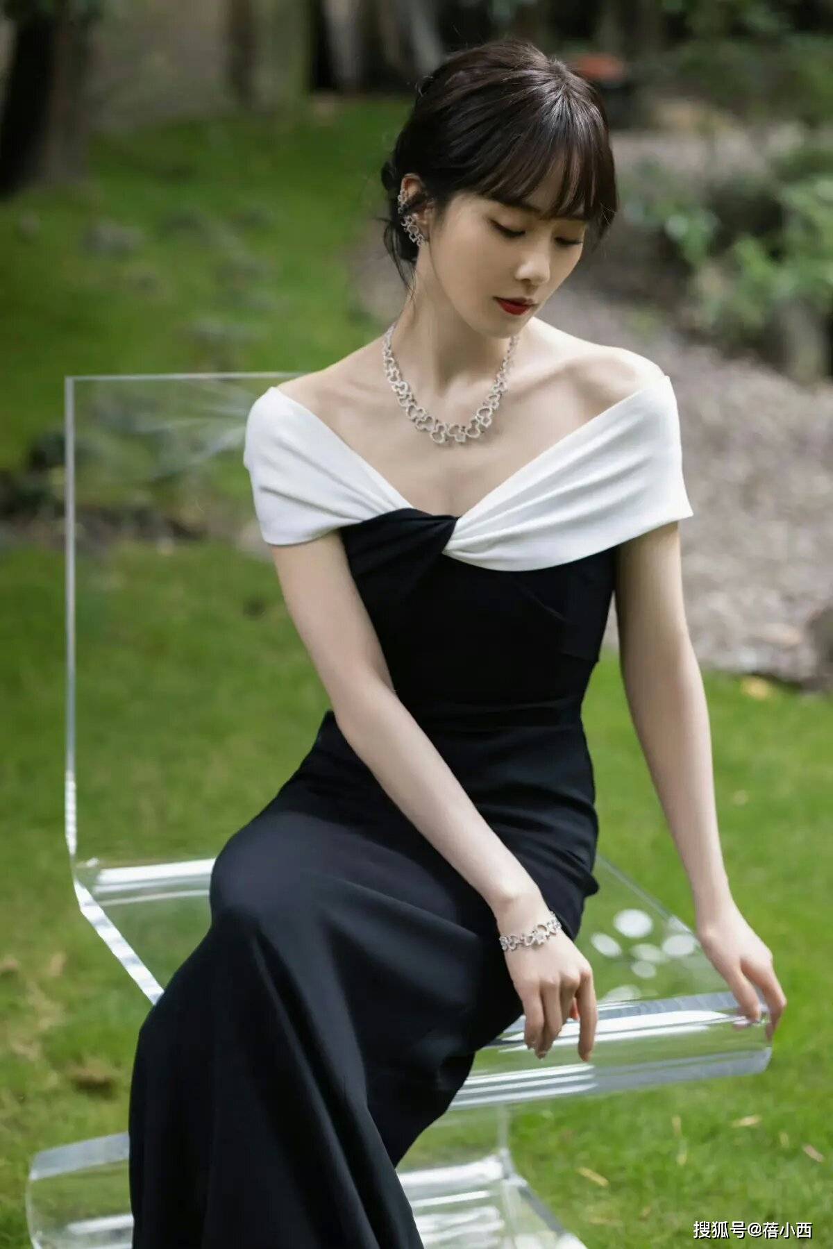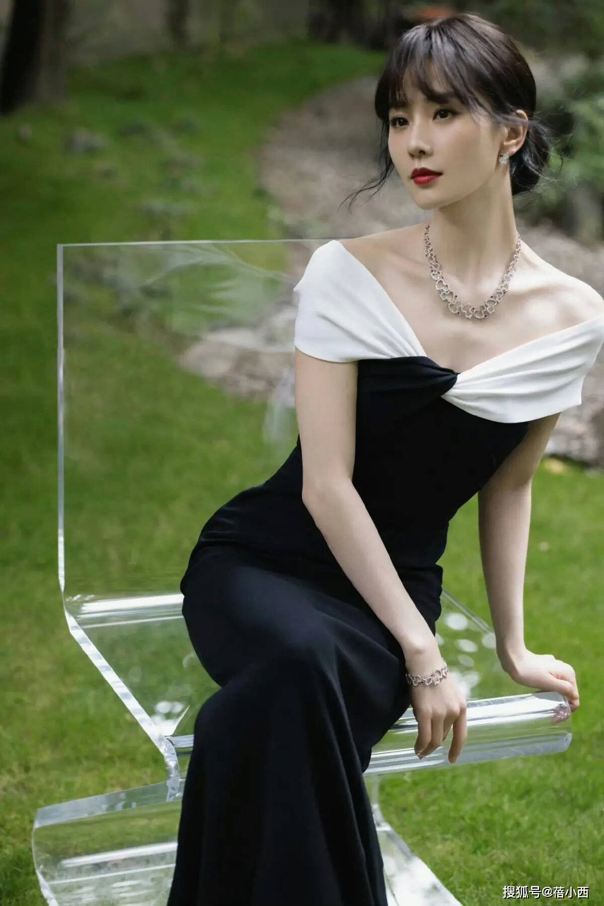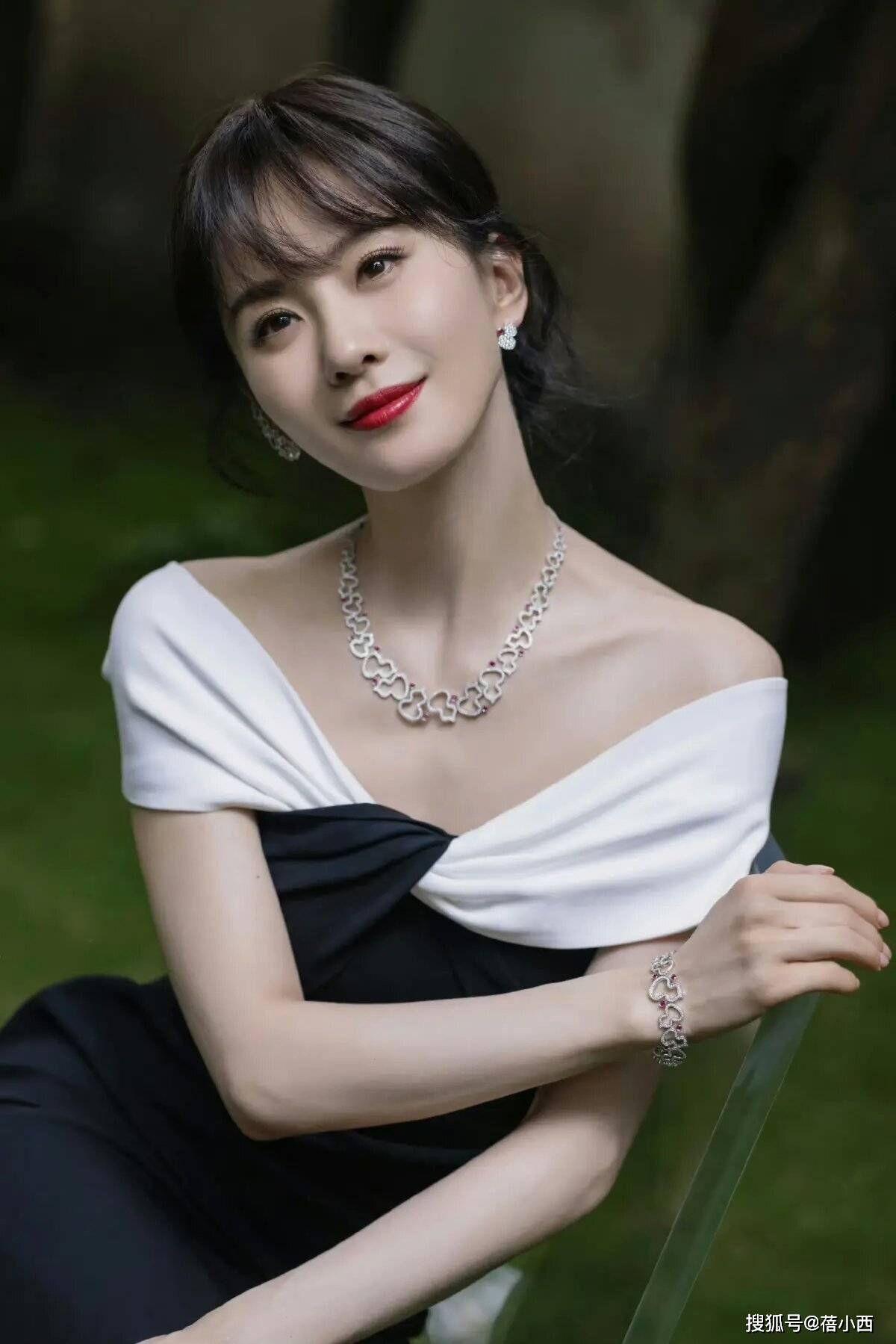 刘诗诗剪刘海美到认不出!穿黑白拼接一字肩连衣裙,天鹅颈很抢眼