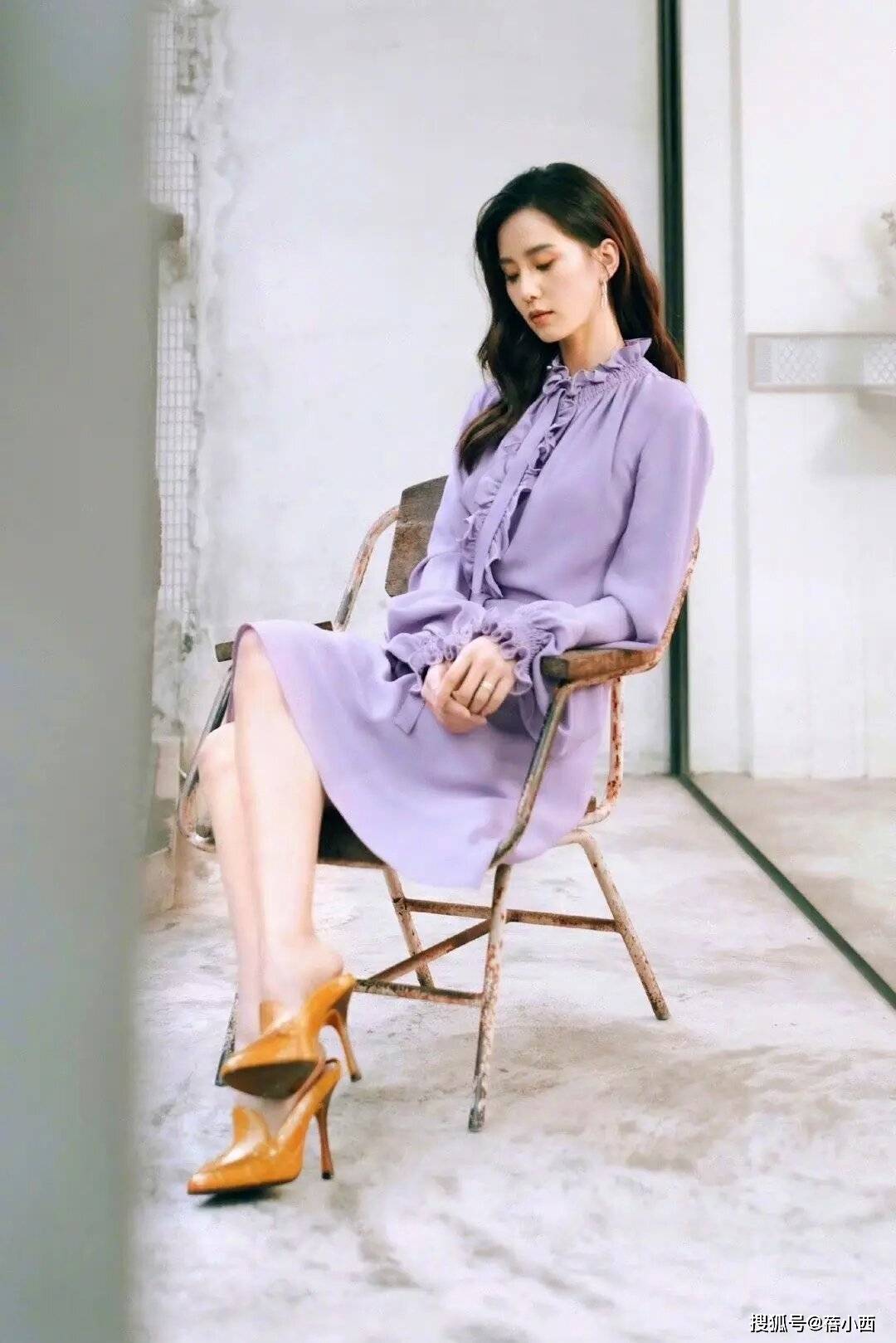 夏日,各种缤纷多彩的亮色单品也成为了女生朋友凹造型的必备,尤其是刘诗诗所穿的这身连衣裙以温柔的紫色为主色调,这种浪漫的浅紫色连衣裙是真的很显白显气质,很适合成熟女性,温柔婉约,搭配橘色高跟鞋形成了撞色搭配,更显得活力满满,