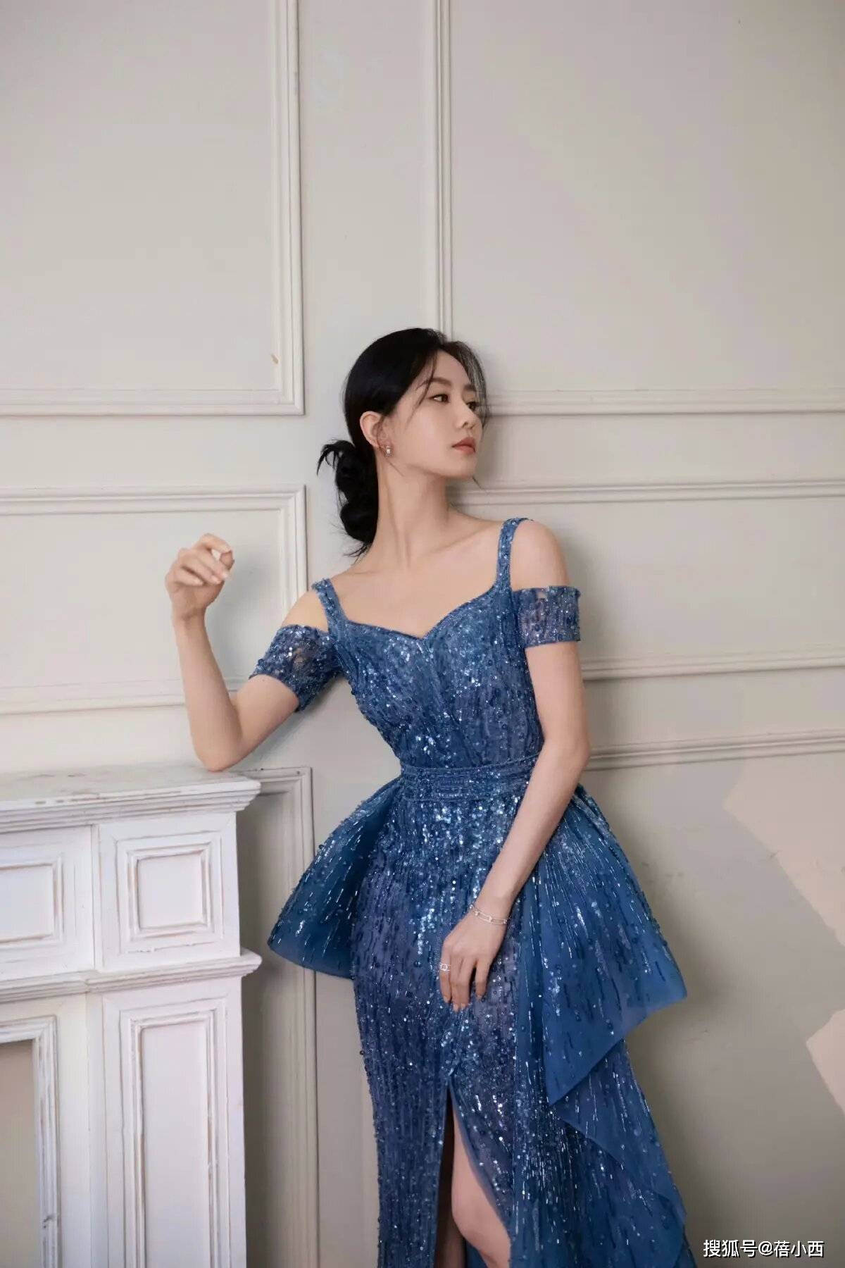 吊带连衣裙是必备的单品,女生朋友们在凹造型的时候都会把目光放在这种吊带的连衣裙上。刘诗诗所穿的这身吊带连衣裙款式也很性感,尤其是连衣裙又结合了一字肩的处理,这样更能够增强设计感,上面再加入亮片点缀,亮晶晶的很有亮点。