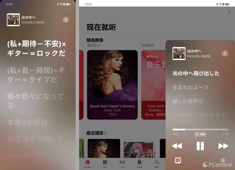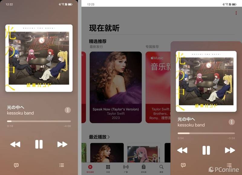 Apple Music针对大屏做了“小窗”设计,可以随时呼出播放界面,但是缺少大屏模式下的全屏播放界面,个人认为有点遗憾。