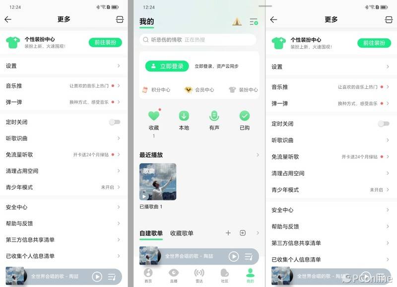 主界面就是打开app看到的第一个界面,也就是app的首页。在这个界面上,三大国产音乐app都差不多,底部的导航栏和播放栏布局一致,折叠状态和展开状态下的布局也都一样,意味着此界面下他们并没有针对折叠屏设备进行调整。