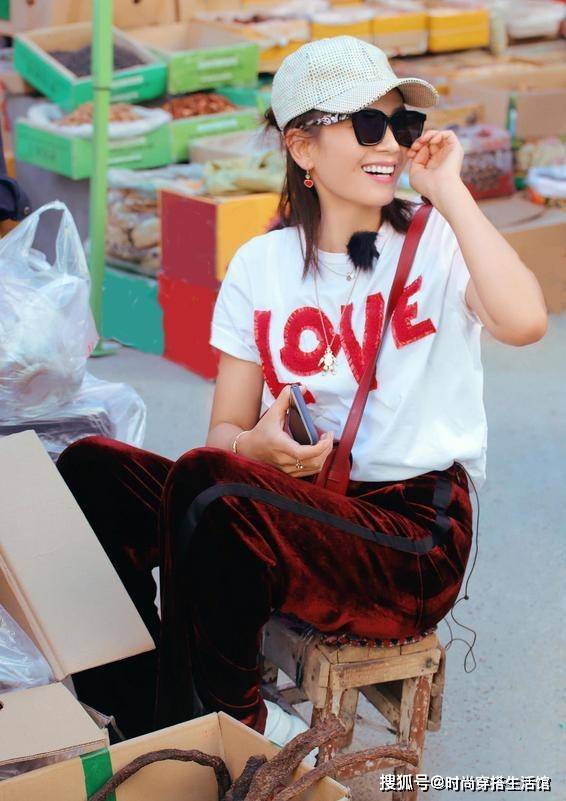 说到白T,大家基本上会默认用牛仔裤和它相搭配,但是要想诠释出减龄休闲风的40+女人却可以在这方面下功夫。刘涛就用一件酒红色的丝绒长裤来搭配白T,深调的酒红色自带复古美感,丝绒质地的长裤加入了直筒裤的版型设计,垂感极佳的面料也会让直筒裤藏肉显瘦的功效更加出色,腿部微胖的女人穿上也能很好显瘦。