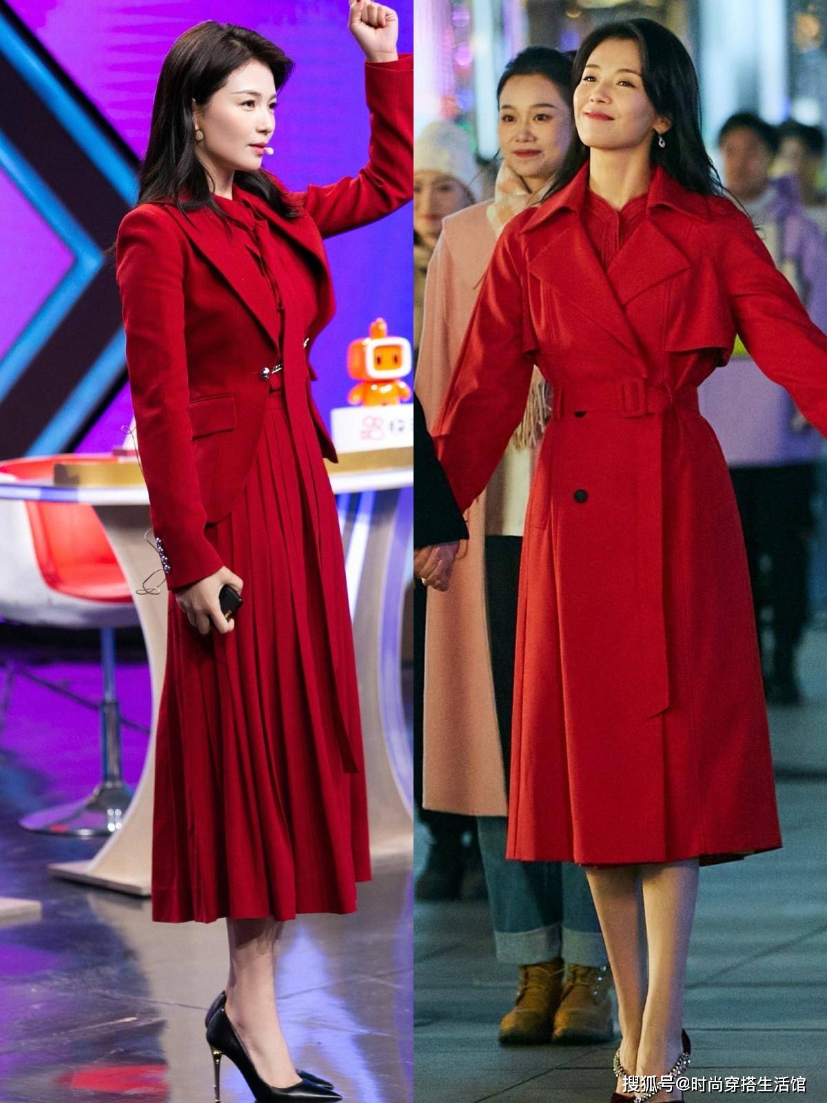在这个临近新年的时期,建议大家多尝试“饱和度高”一些的彩色系,刘涛所选的复古红就很衬气色,既能打造出视觉冲击感,又能收获超高回头率。