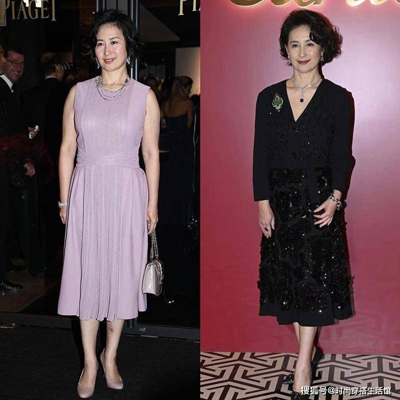 而且她更倾向于选择素色调的服装,如白色、黑色、米色等,这些颜色既能展现出她的高雅气质,又能凸显出她的肤色优势。与过于花俏的颜色相比,素色调更加适合她的年龄和气质。