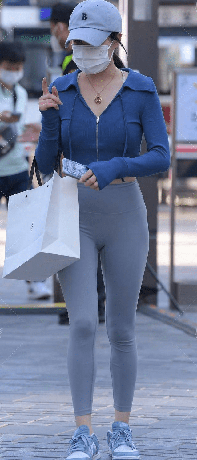 我们继续来分析一下小姐的这套搭配,看小姐姐下身的这件蓝灰色的紧身瑜伽裤,超级简单的款式,穿在她的身上完全就是100%的还原腿型,给人一种腿在外面的效果。这么一看小姐姐真是腿精无疑了,怎么会这么迷人呢?这不,当小姐姐把手放在腰上,露出了她的迷人腰线,再加上她修长的头发,看起来真的是太有范了吧。