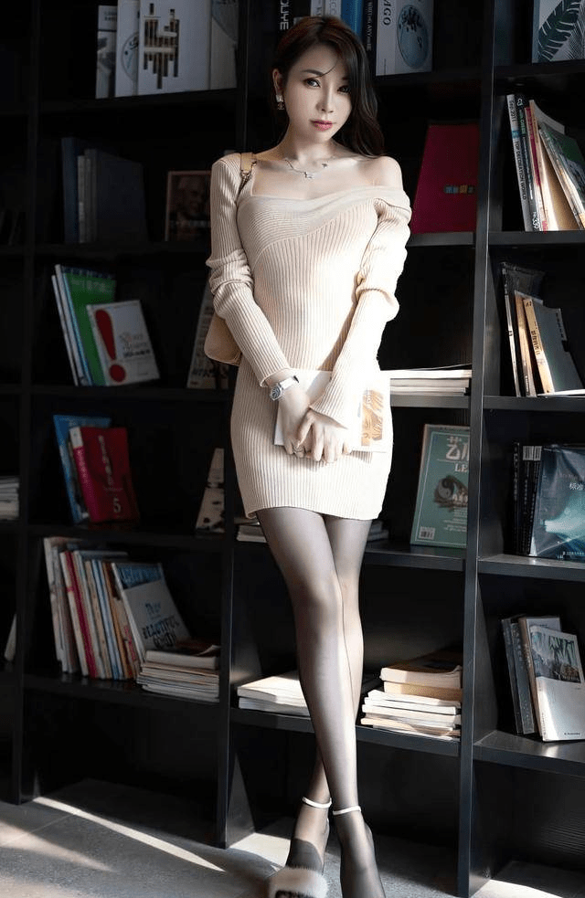 通过上图我们看到,小姐姐穿的是一件很像潜水服的上衣,穿在她的身上显得特别修身,而在鞋子的选择上,我们可以看到她穿的是以一双白色运动鞋,鞋子内部还有一些增高效果,所以让小姐姐的腿型还是还是非常修长,这样搭配的小姐姐是不是很有妙龄少女的感觉呢?完全就像是个20出头的小姑娘啊。