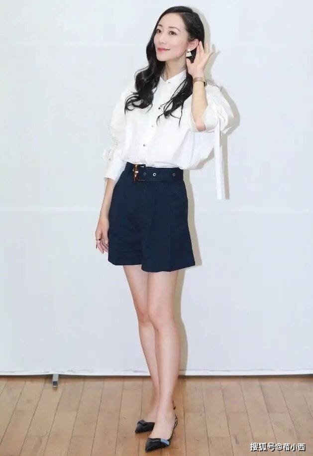 衬衫的穿法是多样的,初秋季节我们也可以在通勤时选白衬衫凹造型,韩雪通过白衬衫搭配短裤,依然展现出了她的大长腿,而且把衬衫塞进裤子里,腰线凸显出来,也显得比例很好。