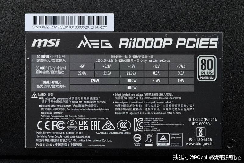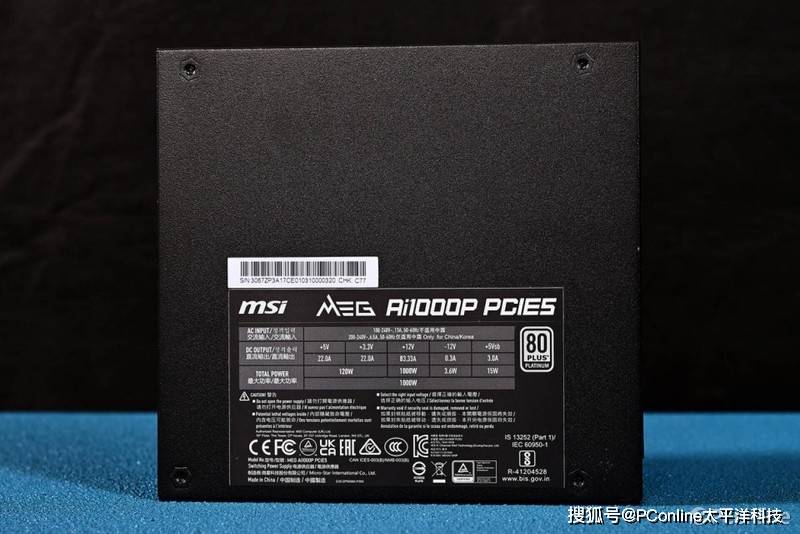 微星MEG Ai1000P PCIE5战神电源铭牌