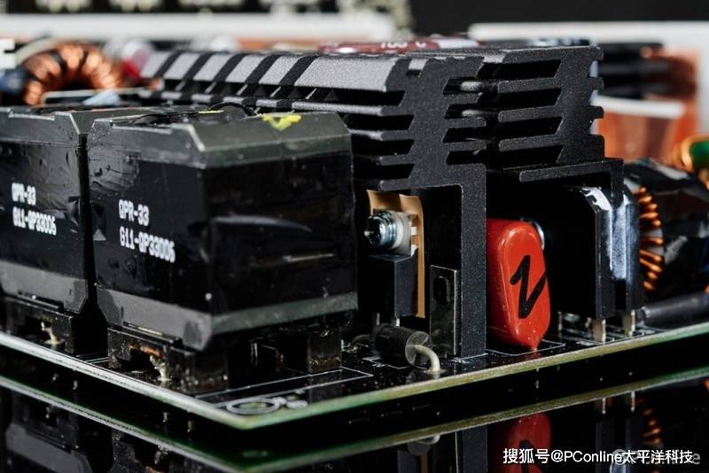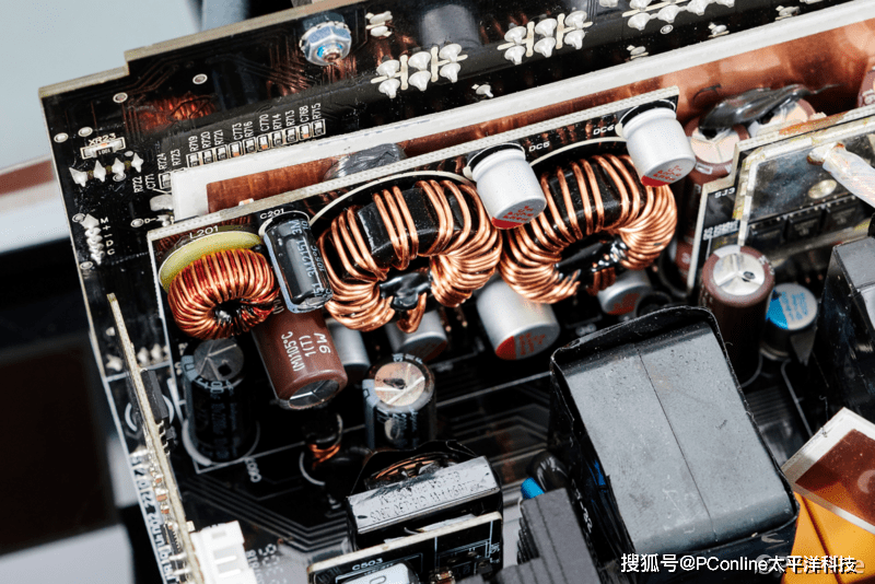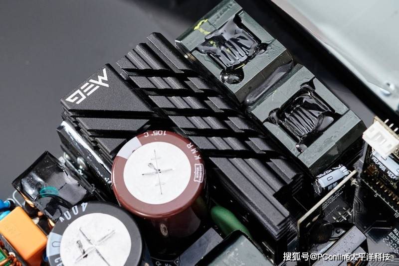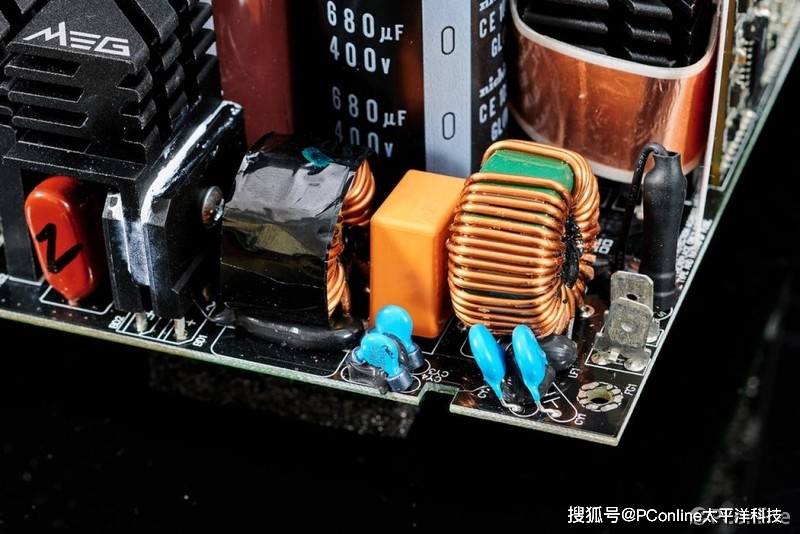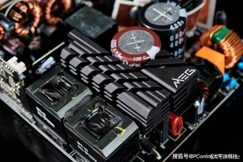 首先微星MEG Ai1000P PCIE5战神电源的电源架构相当先进,采用的是半数字CTT平台方案,交错式PFC+全桥LLC谐振+同步整流+DC-DC结构采用电源有着极为出色的转换率表现;其次是电源的用料也是相当出色,全套EMI滤波、数字MCU主控、全日系105度 PFC电容、全桥LLC、日系电解电容、大面积散热鳍片,以及高性能静音风扇等卖点都是同级电源中罕见的