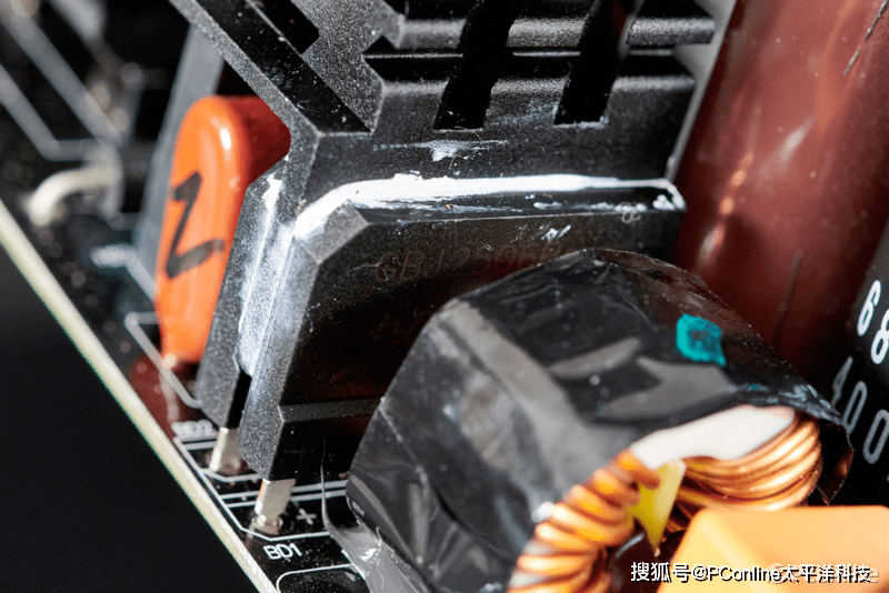 整流桥散热片旁边是PFC二极管的大型散热器,