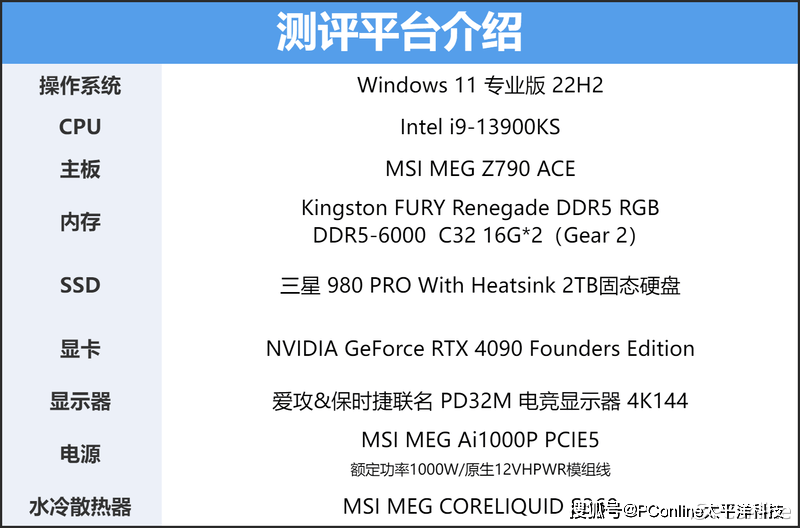 测试平台我们挑选了目前最为顶级的设备,处理器采用的是Intel旗舰处理器i9-13900KS,配套使用的主板是MSI MEG Z790 ACE主板以及Kingston FURY Renegade DDR5 RGB内存,而显卡则是NVIDIA顶级旗舰RTX 4090 Founders Edition,利用顶级的配件以达到压榨微星MEG Ai1000P PCIE5战神电源最强的实力。