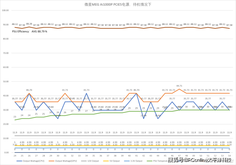 微星MEG Ai1000P PCIE5战神 80PLUS白金牌全模组电源,测试