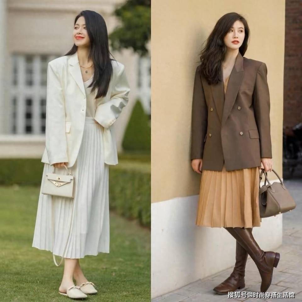 裙子的长度一定要秉承着,适当的原则,这要根据你的身高去调整裙长。不能太短也不能太长。对于过膝百褶裙来说,长度太长就容易显得拖沓、压个子,让穿搭变成一根柱子,很没有曲线。