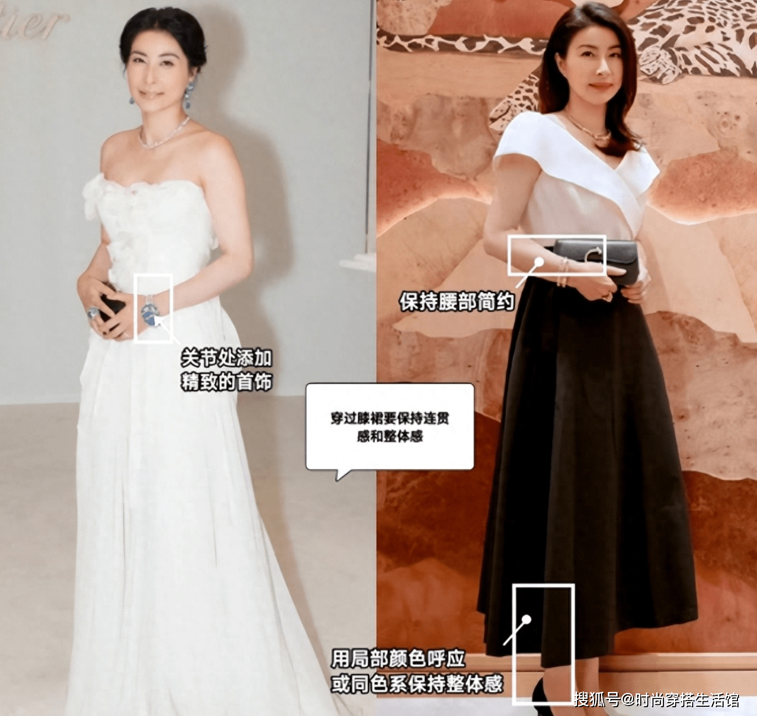 裙装的长度一直以来都备受争议,很多人觉得短裙才更显腿长,而且还很有活力,可是踏入中年以后,你就会发现长裙更优雅,并且也更符合我们的穿衣需求。针对腿型上的问题,长裙都可以帮助我们迎刃而解。