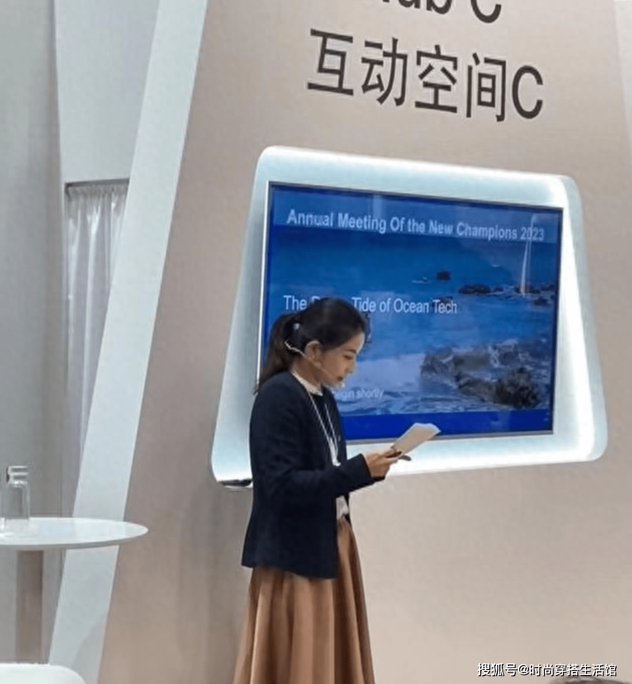 郭晶晶的穿搭有很明显的特征,她从不喜欢穿设计款的衣服,选择的服装单品大多数都是这种基础款。线条感流畅+设计简约利落,一眼看过去就特别干练利落,就算是穿西装也会优先选择纯色款,藏蓝色的小西装搭配上卡其色半身伞裙,分分钟就穿出了又美又飒的效果。