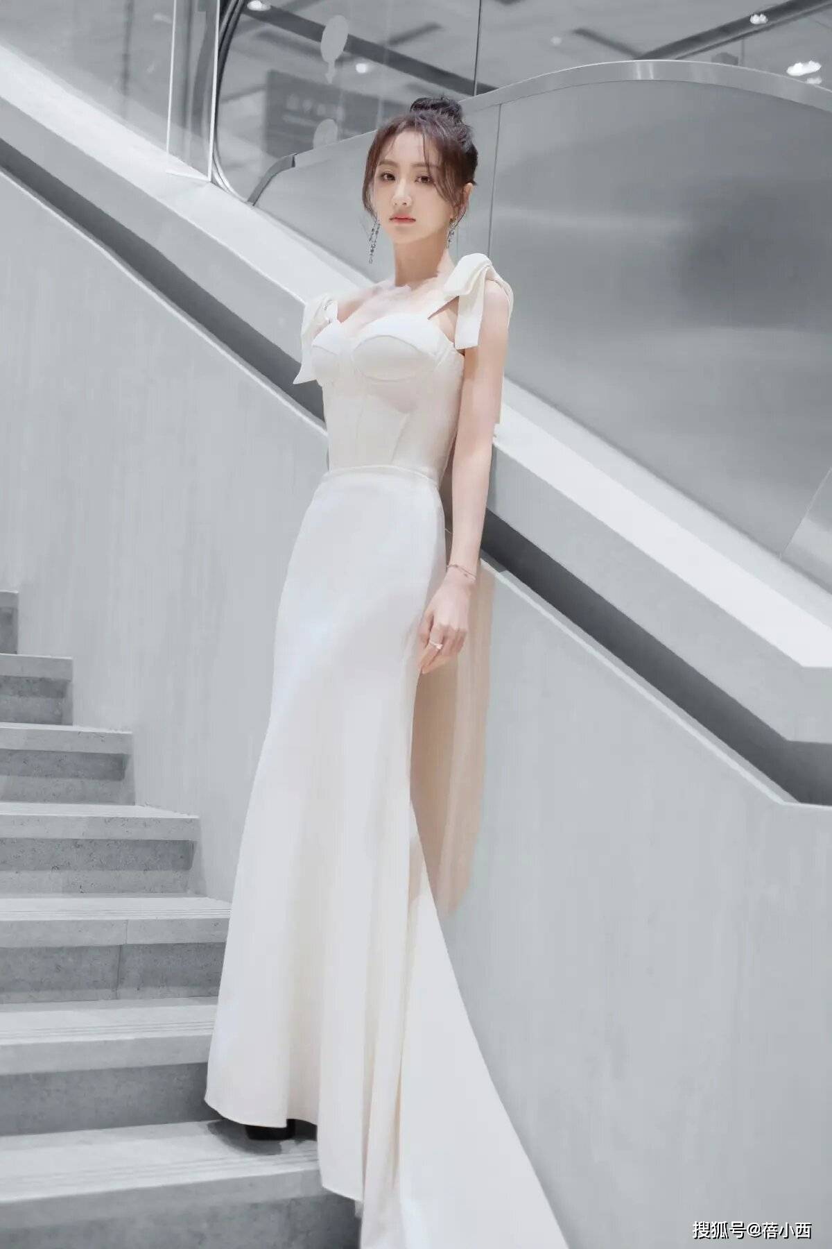 对于女明星来说,穿的裙子越长,气场也就越强,如果是出席活动时想要穿连衣裙,那么这种拖地的长裙往往是比短裙更合适的选择,就像杨蓉所穿的这身连衣裙,长度也拖地,而且拖地连衣裙衬得身材更高挑了,气场也得到了提升。