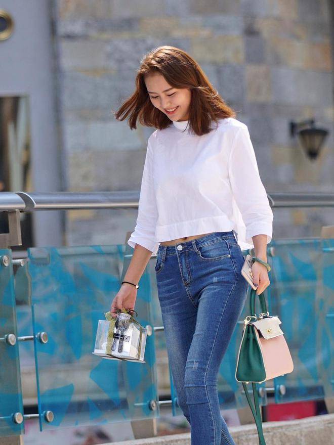 而牛仔裤当中出镜率相当来说最高的要数紧身牛仔裤了,主要是因为这种裤型穿起来可以把双腿的线条修饰的分外的流畅自然。而且对于身材微胖的美女来说,也是特别的友好,她们穿上之后,可以把腿部包裹的更加的纤细和利落,看起来分外的匀称。所以呢,它相当的受青睐。
