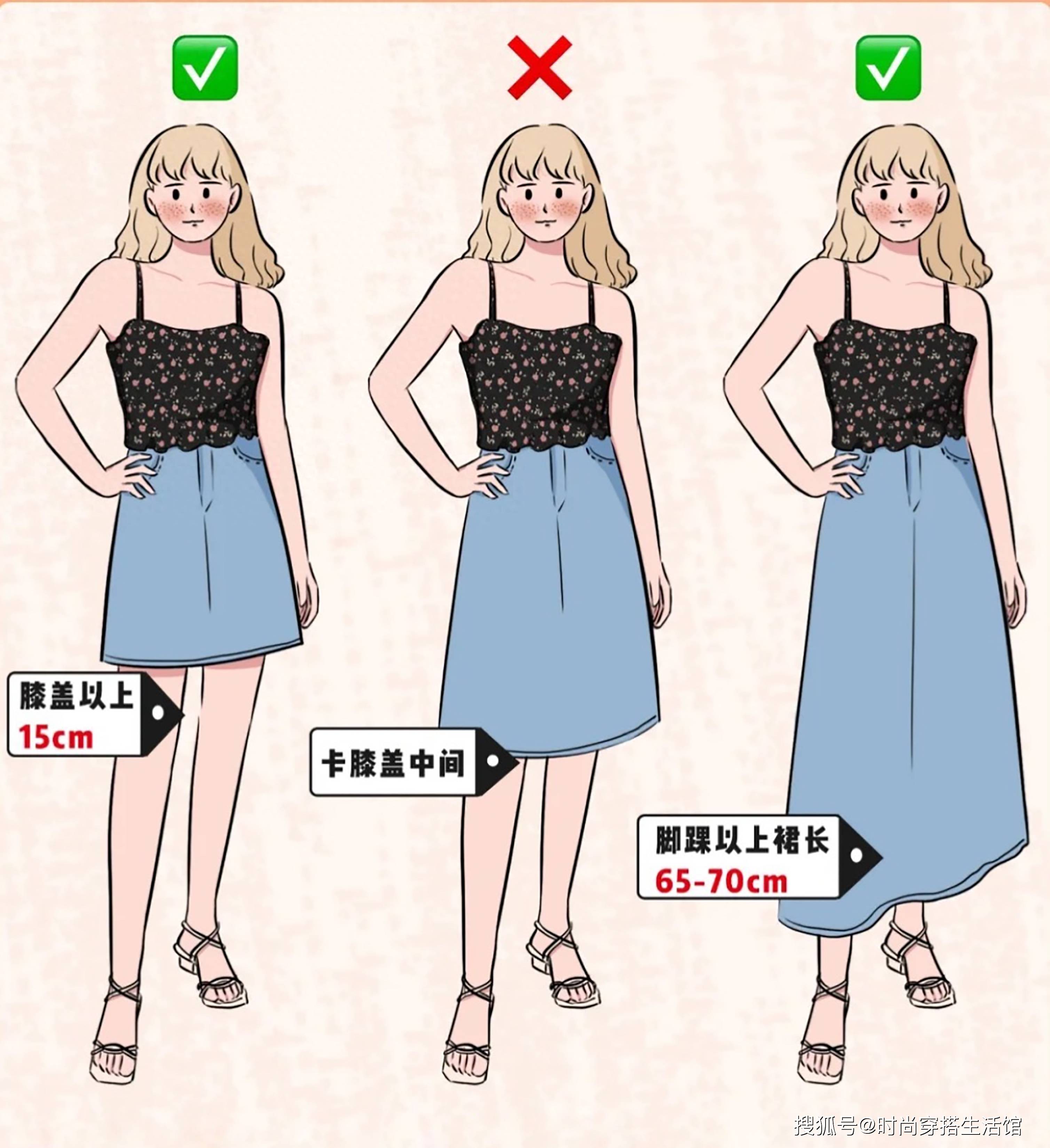 正确思路:小个子长裙最好的长度就是在脚踝以上,裙长大概在65-70cm的长度,适当地露出腿部肌肤,显高又气质。