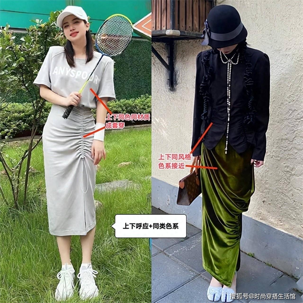 想要让造型更具备协调性,就可以尝试一下“上下呼应”的效果,上下同色同材质,更不容易出错。或者还可以采用同类色系,上衣跟下装风格和色系相近,搭配出来的效果,也能轻松摆脱违和感。
